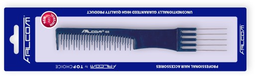 Grzebień FALCON - szpikulec metalowy z regularnym układem zębów. Mocne i elastyczne, odporne na wysokie temperatury tworzywo ABS. Posiada właściwości antystatyczne. Lekki w dłoni. Może być wykorzystywany w fryzjerstwie.