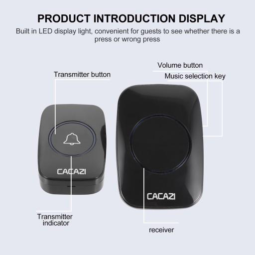✅Wbudowana lampka kontrolna LED, dzięki której goście mogą wygodnie sprawdzić, czy zostali naciśnięci lub czy zostali naciśnięci przez pomyłkę.