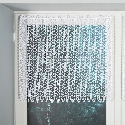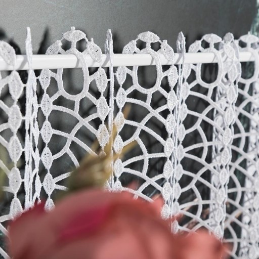 Śliczna firana gipiurowa na metry o wysokości 75cm w kolorze białym.