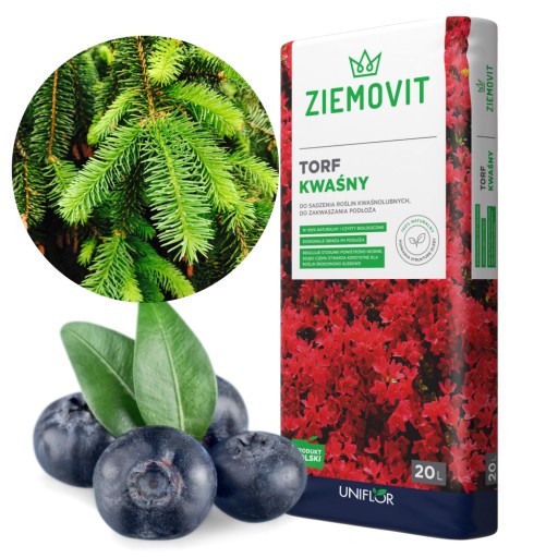 PODŁOŻE ZIEMIA TORF KWAŚNY DO BORÓWKI RODODENDRONÓW NATURALNY 20L ZIEMOVIT