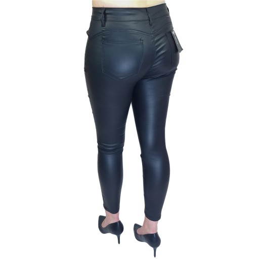 SPODNIE WOSKOWANE DAMSKIE RURKI PUSH UP EKO SKÓRA CZARNE MODELUJĄCE