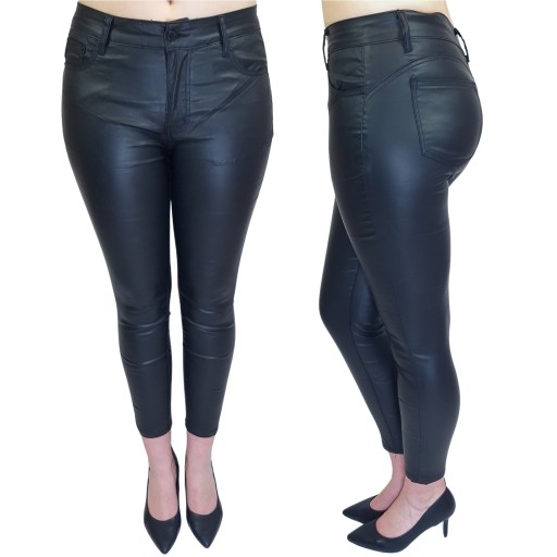 ⭐SPODNIE CZARNE DAMSKIE WOSKOWANE SKÓRA PUSH UP PRZYLEGAJĄCE STYLOWE⭐