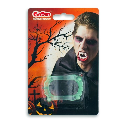 Oryginalnym strojem karnawałowym jest bez wątpienia strój wampira. Żaden kostium nie będzie jednak kompletny bez odpowiedniej charakteryzacji. Zęby wampira z powodzeniem uzupełnią stylizację na imprezę tematyczną lub karnawałową, dodając całej kreacji wampira właściwego charakteru.Zaletą oferowanych zębów wampira jest świecenie w ciemności. Dzięki temu cała stylizacja będzie wyglądać efektownie nawet przy zgaszonych światłach, ściągając na siebie uwagę innych gości. Wykonane z miękkiego i nieprzeszkadzającego materiału zęby są wygodne w użyciu.Świecące sztuczne zęby wampira to absolutna podstawa stroju wampira, pozwalająca na pełne wykorzystanie możliwości stylizacji. Zęby wampira sprawdzą się zarówno na imprezie karnawałowej jak i na imprezie tematycznej pod hasłem Duchów i Demonów. Zęby wampira będą także doskonałym dodatkiem do kostiumu na Halloween, dodając całej stylizacji drapieżności. Zęby wampira z pewnością sprawią, że Twoja kreacja będzie niezapomniana!