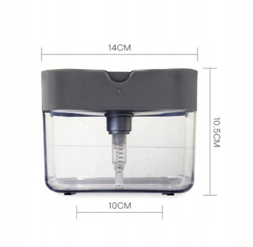 Dozownik znacząco ułatwia i przyśpiesza dozowanie odpowiedniej ilości mydła w płynie, płynu do zmywania - wystarczy lekko wcisnąć gąbkę, a porcja płynu namoczy gąbkę.