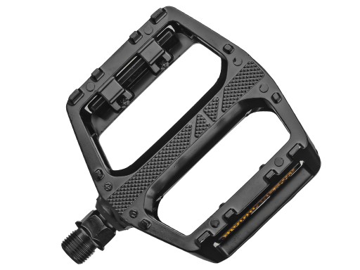 Wytrzymały model pedałów platformowych. Korpus wykonany ze stopu aluminium, zintegrowane piny dobrze przylegają do każdego rodzaju podeszwy.