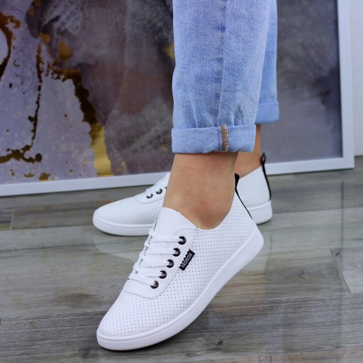 MODNE BIAŁO TRAMPKI DAMSKIE DZIURKOWANE FASHIONS