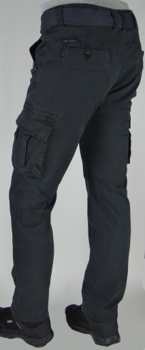 Spodnie z Paskiem Bojówki Rozciągliwe Ciemno Szare