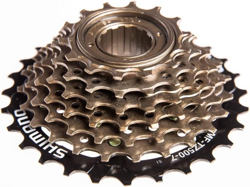 Wolnobieg nakręcany MF-TZ500 7 rz. 14-28- jest to zespolony zestaw zębatek wraz z systemem zapadkowym. Wolnobieg współpracuje z piastami tylnymi posiadającymi gwint, na który można go nakręcić. Standardowy rozmiar gwintu dla wolnobiegów Shimano to średnica 1,37" x 24T. Do zdemontowania wolnobiegu wystarczy klucz wielowpustowy, który wkładamy pomiędzy oś a wolnobieg. Wolnobieg odkręcamy w stronę przeciwną do ruchu wskazówek zegara.
