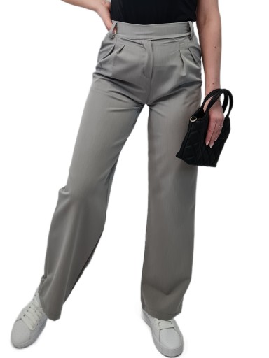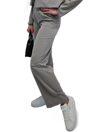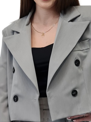 Nowoczesny GARNITUR DAMSKI Szary, Krótka Marynarka i Szerokie Spodnie, r. M