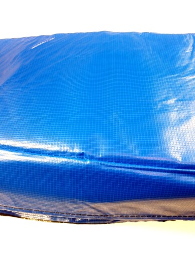 Nowy rozdział w produkcji osłon do trampolin: Polichlorek winylu - właściwości termoplastyczne, wysoka wytrzymałość mechaniczna oraz na działanie wielu rozpuszczalników. Osłony z tego tworzywa można umyć środkami chemicznymi. Nie zaszkodzą im również żrące, ptasie odchody, które osłabiają osłony z polietylenu. Osłona jest odporna na trudne warunki atmosferyczne i promieniowanie słoneczne i nie pęka, NIE KRUSZY SIĘ OD SŁOŃCA. Jest estetycznie wykonana, prawidłowo zakrywa sprężyny i inne elementy metalowe. Zachodzi około 5 cm na matę. Przy takiej szerokości dziecku nie wpadnie noga pomiędzy sprężyny. Jest miękka i ładnie się układa na ramie trampoliny. Szeroka: 26 -27 cm i dodatkowo ok. 10 cm, które opadając w dół zakrywa rury ramy od zewnątrz. Grubość pianki wszytej w osłonę: 12 mm - jest sztywna, nie fruwa. Mocowana do ramy wiązaniem z gumy - na luźno.