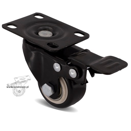 Koło składa się z polipropylenowej piasty oraz z niebrudzącej poliuretanowej opony, posiada podwójne łożysko kulkowe.