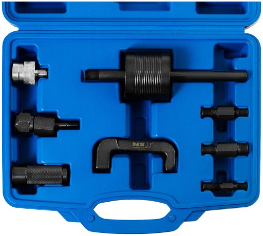 Ściągacz do wtryskiwaczy Diesla marki MSW pozwala bezpiecznie wymontować części bez konieczności zdejmowania głowicy cylindrów. Dzięki licznym adapterom można użyć tego zestawu do większości wtryskiwaczy Diesla w różnych pojazdach. Sprawdzi się przede wszystkim w warsztatach komercyjnych oraz prywatnych. Bez użycia specjalistycznych narzędzi, można szybko uszkodzić wtryskiwacze oraz silnik, a także ryzykuje się zranieniem. Oferowany ściągacz wtryskiwaczy pozwala pracować bez stresu i strat. Zestaw narzędzi z różnymi adapterami pasuje do większości silników Diesla. Niezależnie od tego, czy masz przed sobą wtryskiwacze Boscha, Delphi, Denso czy Siemensa, ściągacz będzie kompatybilny z tymi markami. Wszystkie części narzędzia są wykonane z trwałych materiałów i gwarantują wysoki poziom odporności, nawet przy użyciu dużej siły. Zestaw jest dostarczany w praktycznej plastikowej walizce, która ma wycięcie na każdą pojedynczą część. Dzięki temu komplet jest bezpieczny i uporządkowany. W zestawie znajduje się walizka do wygodnego transportu i przechowywania narzędzi.