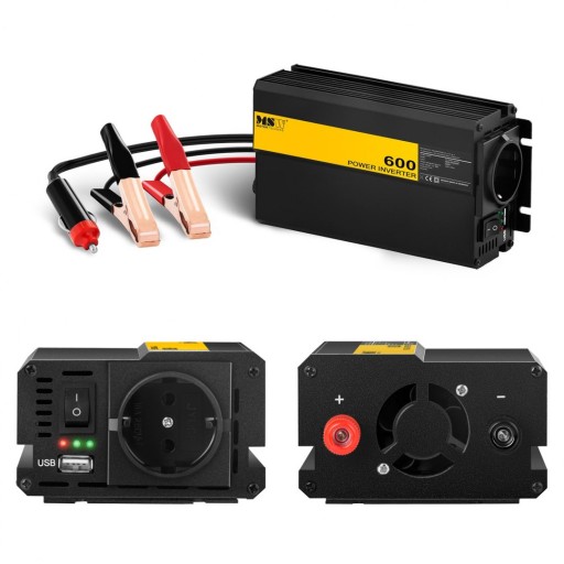 Model MSW-CPI600MS jest w stanie osiągnąć ponad 90% wydajność podczas przekształcania prądu stałego (12 V) na zmienny (230 V), a dzięki dołączonym do zestawu przewodom z zaciskami użytkownik może uruchomić każde urządzenie AGD o mocy nieprzekraczającej 600 W. Stan urządzenia można monitorować za pomocą specjalnych diod na przednim panelu.