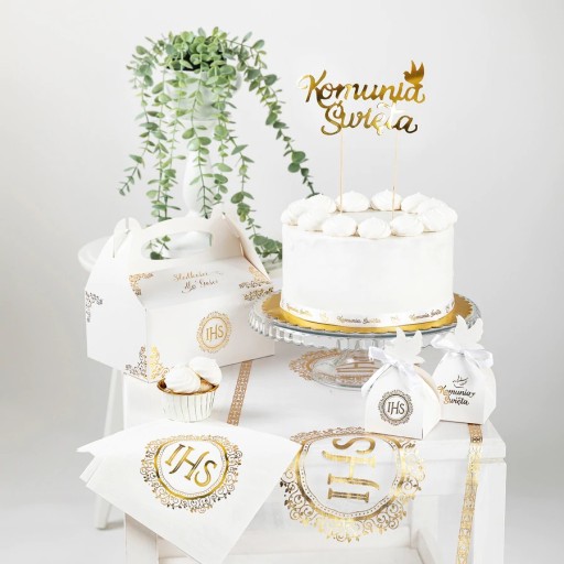 Topper ozdoba na tort na KOMUNIE komunijny do deserów złoty Komunia Święta