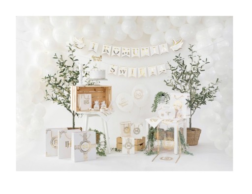 Wspaniały i elegancki, komunijny topper na tort, stanowiący niezapomniany element dekoracyjny podczas uroczystości. Wykonany z najwyższej jakości materiałów, utrzymany w złotym kolorze, co nadaje mu wyjątkowego i uroczystego charakteru. Topper prezentuje napis "Komunia Święta" w pięknej czcionce, a nad literą "a" umieszczony jest mały, uroczy gołąbek. Całość emanuje estetyką i gustownością, jednocześnie zachowując prostotę i subtelność w formie.