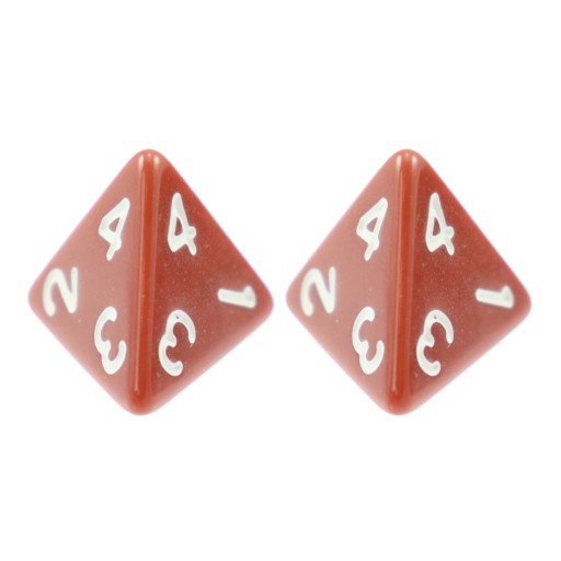 Komplet dwóch kości czterościennych. Niezwykle wysoka jakość odlewu, precyzja żłobienia oraz malowania numerów czynią z nich podstawowy wybór dla wielu graczy, zarówno początkujących, jak i zaawansowanych.