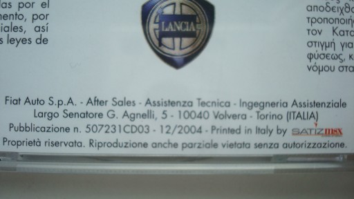 Lancia Ypsilon instrukcja napraw na CD Lancia Ypsilon 12.2004r Oryginał PL Oryginalna