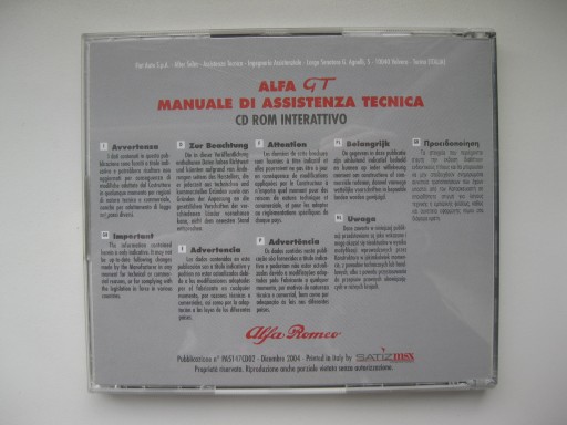 Руководство по ремонту Alfa Romeo GT на компакт-диске Ремонт ALFA GT оригинал 12/2004