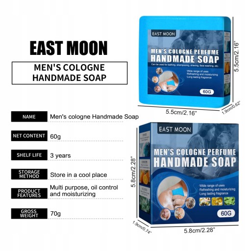 East & Moon męska Cologne mydło wyrabiane ręcznie kontrola oleju delikatne oczyszczanie nawilżające mycie twarzy szampon kąpiel golenie niezbędne mydło pielęgnacja skóry