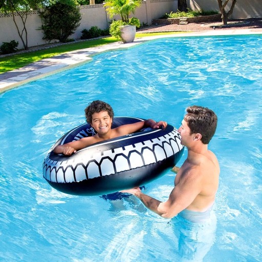 - Koło dmuchane z motywem opony to idealny produkt dla osób, które cenią sobie relaks i zabawę w wodzie.