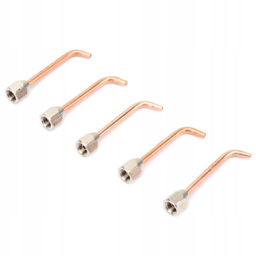 4. Zestaw zawiera 5 wymiennych końcówek, które zapewniają różne długości i zakres mocy cieplnej dla płomieni z różnych metali i grubości.