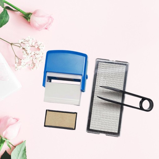 Zawiera pęsetę, atrament, nadrukowaną pieczęć i tablicę z napisami, dwuliniową lub wieloliniową treść drukowania można łatwo usunąć i wymienić.