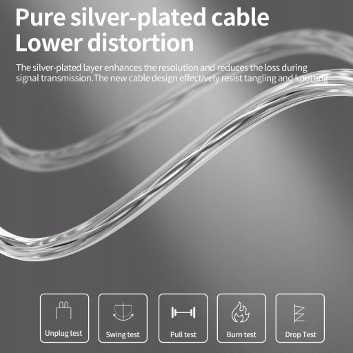 - Najwyższa jakość konstrukcji: W słuchawkach dousznych zastosowano 4 pasemka posrebrzanego drutu o wysokiej czystości, aby zwiększyć pełnię wysokiej i niskiej częstotliwości. Pozłacana wtyczka 3,5 mm może zmniejszyć utratę sygnału, zapewnić lepszą transmisję dźwięku. Odłączany kabel umożliwia większą kompatybilność i opcje ulepszenia.