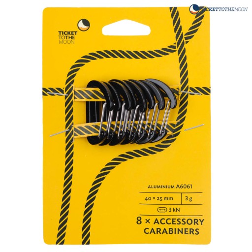 Para kompaktowych karabinków akcesoryjnych - wytrzymałość 3 kN . Karabinki są ultralekkie i bardzo wytrzymałe. Uniwersalne, niezastąpione w życiu codziennym, na biwaku i w survivalu. Karabinki z powodzeniem nadają się do łączenia linek oraz zawiesi. Doskonałe do zaczepiania odciągów, troczenia noża, kluczy, latarek, itd. Możliwość mocowania na plecakach, kamizelkach lub wszędzie gdzie zajdzie się taka potrzeba.