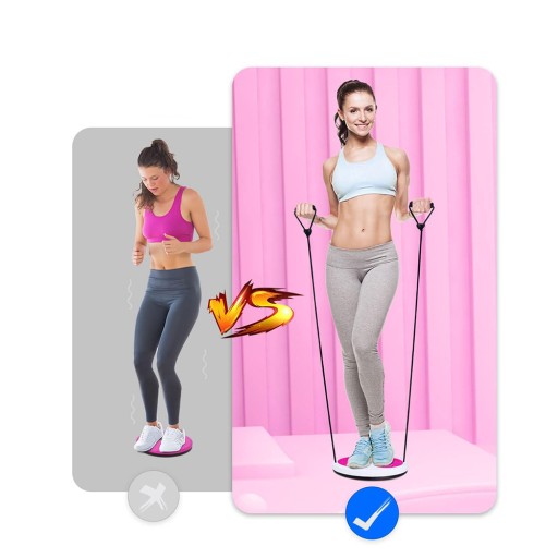Ćwiczenia wykonujemy poprzez ustawienie sprzętu na podłodze i wykonywanie skrętów bioder. Wystarczy 10-15 minut dziennie, aby odczuć efekty. Dołączone linki wzmacniają mięśnie, ułatwiają spalanie tłuszczu oraz pomagają utrzymać równowagę. Dzięki temu urządzeniu zlikwidujesz tkankę tłuszczową na biodrach, talii i udach oraz zrzucisz zbędne kilogramy w bardzo prosty sposób