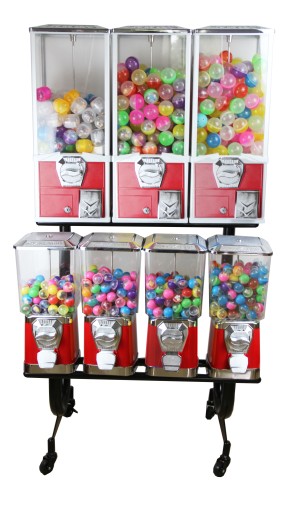 Zestaw automatów sprzedający piłki kauczukowe oraz kapsuły z zabawkami w rozmiarach od Ø 27 mm do Ø 55 mm