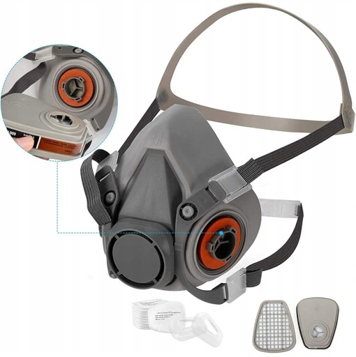 🤿 Maska oddechowa na pół twarzy, maska przeciwgazowa wielokrotnego użytku, profesjonalna ochrona dróg oddechowych przed pestycydami pyłowymi