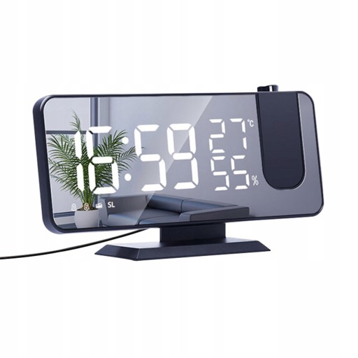 Cyfrowy zegar temperatury i wilgotności posiada dwa alarmy, ma lustrzaną powierzchnię i pozwala ustawić radio jako dźwięk alarmu.
