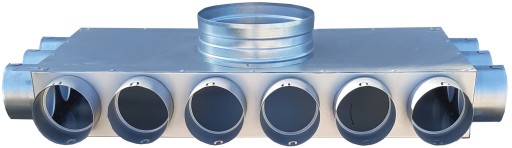 Rozdzielacz dzięki specjalnym kierownicom, płynnie przejmuje powietrze dostarczone głównym przewodem (⌀ 160 lub ⌀200mm) a następnie równomiernie kieruje je w stronę wyjść. Takie rozwiązanie zapewnia identyczne rozprowadzenie powietrza do przewodów (⌀60 lub ⌀75mm) dzięki czemu w każdym pomieszczeniu mamy jednakowy dopływ powietrza. Jest to ogromnie ważne do prawidłowego działania całego systemu.