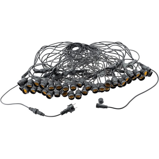 ⚡️Ta elegancka girlanda o długości 20 metrów posiada 40 punktów z gwintem E27 w odległości 50cm od siebie. Dzięki klasie szczelności IP44, możesz mieć pewność, że lampa jest odporna na warunki atmosferyczne, co sprawia że idealnie nadaje się do użytku zewnętrznego.