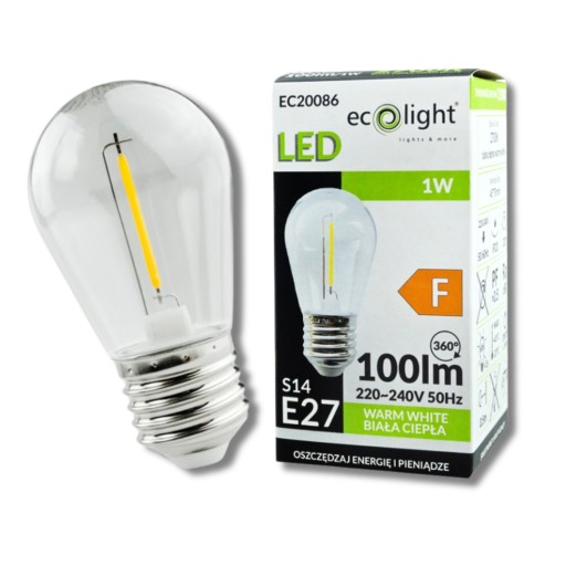 ⭐️Uwaga! W zestawie 40 szt. Żarówka Filament 1W do Girland 230V E27 2700K Ciepłe 100lm⭐️