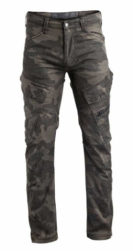 Spodnie posiadają 7 kieszeni z czego 3 skośne na udach. Wszyte pod skosem, aby były łatwiej dostępne. Te kieszenie są zapinane (2 na guziki, a 1 na zamek). Dwie tylne kieszenie również posiadają patki i zamykane są na guziki. Z tyłu wszyto dodatkowy kawałek materiału aby wzmocnić te czułe na rozdarcia miejsce.
