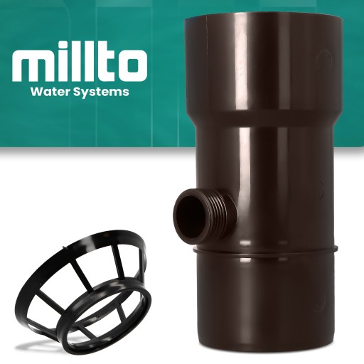 Zbieracz wody deszczowej Millto to produkt służący do przechwytywania cieczy z rur spustowych. To modułowe urządzenie, które zamontowane na rynnie pobiera i jednocześnie filtruje deszczówkę. Zdarza się, że często znajduje się w niej wiele zanieczyszczeń mechanicznych takich jak: gałęzie, liście, błoto czy kamienie. Sitko znajdujące się w środku łapacza (dostępne w rozmiarach 90 i 110 mm) bez problemu zatrzymuje wszelkie tego typu elementy.