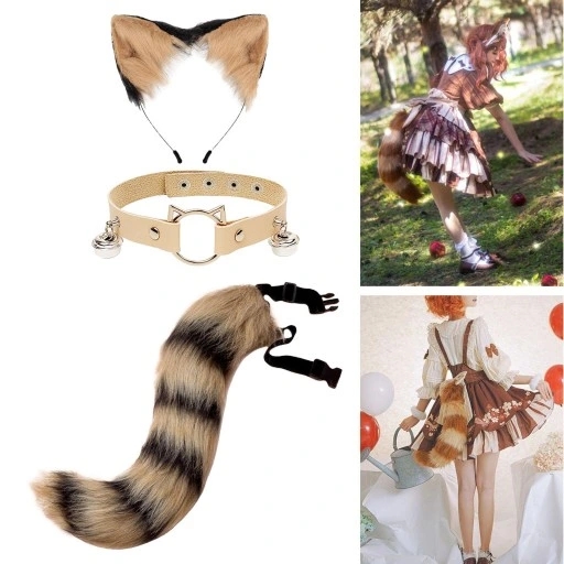 Zestaw Lolita Cosplay Gothic Cosplay zawiera: 1 x pluszowy ogon; 2 x spinki do włosów; 1 x naszyjnik z chokerem