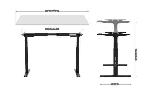 Sam zdecyduj, jak będzie wyglądać Twoje biurko. Stelaż w uniwersalnym kolorze świetnie komponuje się z każdego typu blatem o szerokości od 110 do 160 cm.