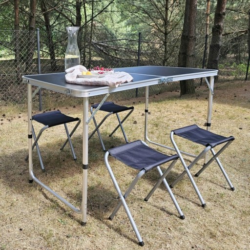 Stół z czterema krzesełkami, to produkt, który idealnie sprawdzi się na wakacyjnych wyjazdach, czy też przyjęciach, kiedy potrzebujemy dodatkowej przestrzeni. Niepozorna walizka, która zamienia się w praktyczny zestaw, cechujący się wygodą i stabilnością. Stół i krzesła wykonane zostały z trwałych i wytrzymałych materiałów. Dzięki solidnym zabezpieczeniom, nie ma ryzyka otwarcia podczas transportu, czy też przenoszenia.