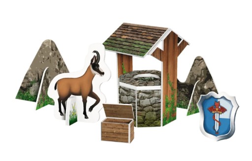 Wybuduj Twierdzę w górach, wykorzystując prawdziwe, wielobarwne cegły, drewno i elementy dekoracyjne jak trawę czy krzew.