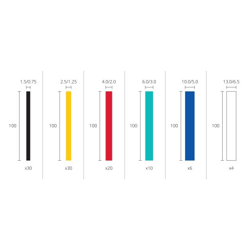 W skład zestawu wchodzą następujące rurki termokurczliwe o długości 100 mm: