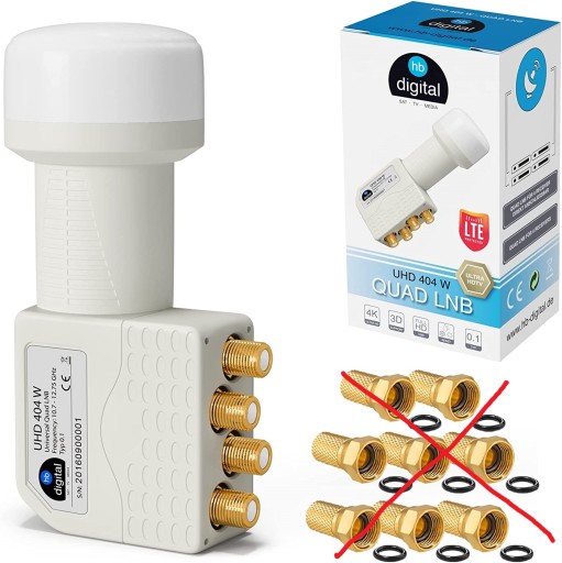 - LNB można podłączyć za pomocą przełącznika DiSEqC w celu odbioru wielu satelitów | Nasze wysokiej jakości pozłacane złącza HB-DIGITAL-F są już zawarte w zakresie dostawy | Jest odporny na zimno, ciepło, wilgoć i promieniowanie UV