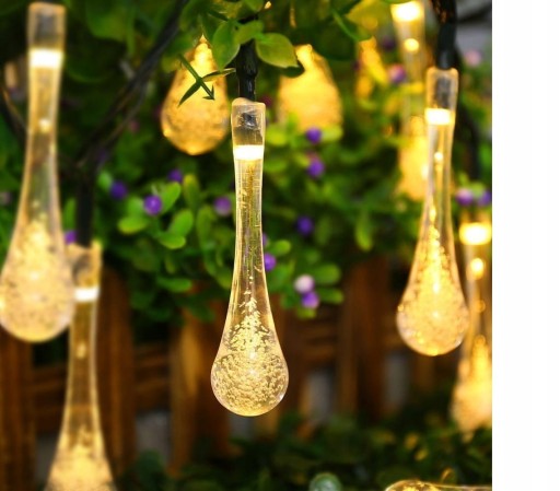 GIRLANDA LAMPKI OGRODOWE SOLARNE 40 LED 6,5M CIEPŁE ZAWIESZKI OGRODOWE ŁEZKI
