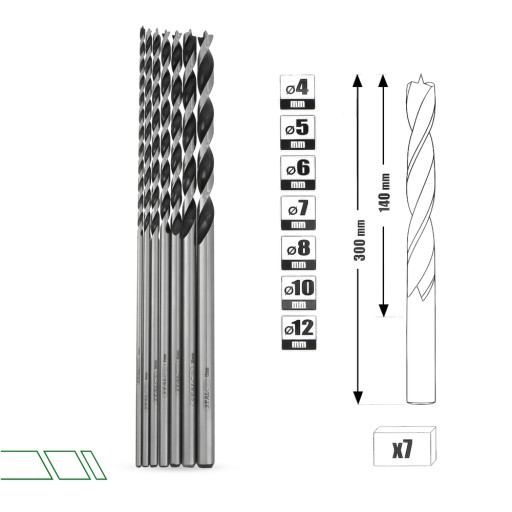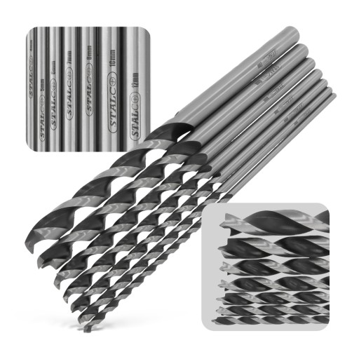 НАБОР СВЕРЛ 7x Сверла по дереву ДЛИННЫЕ СПИРАЛЬНЫЕ Сверла 4–12 мм для гипсокартона