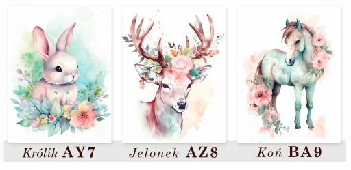 Piękna kolekcja dziecięca akwarelowych zwierzątek, zachowana w pastelowych odcieniach - duży wybór wzorów.