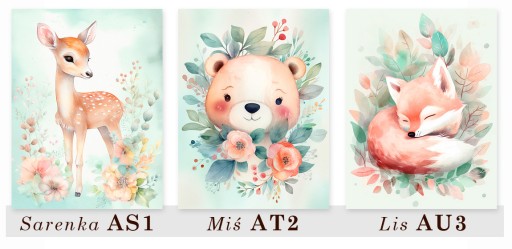 ARTYSTYCZNE PLAKATY z serii "Pastelowe Zwierzęta Leśne"