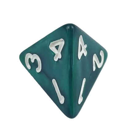 Epicka akrylowa czterościenna kość RPG będąca podstawą każdej sesji.