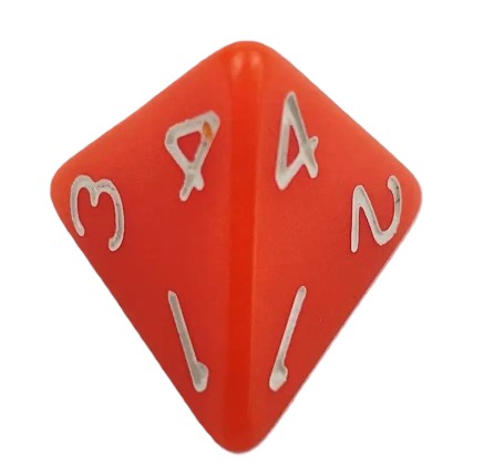 Komplet dwudziestu pięciu kości czterościennych. Niezwykle wysoka jakość odlewu, precyzja żłobienia oraz malowania numerów czynią z nich podstawowy wybór dla wielu graczy, zarówno początkujących, jak i zaawansowanych.