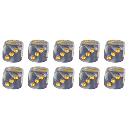 Komplet dziesięciu kości sześciościennych. Niezwykle wysoka jakość odlewu, precyzja żłobienia oraz malowania numerów czynią z nich podstawowy wybór dla wielu graczy, zarówno początkujących, jak i zaawansowanych.